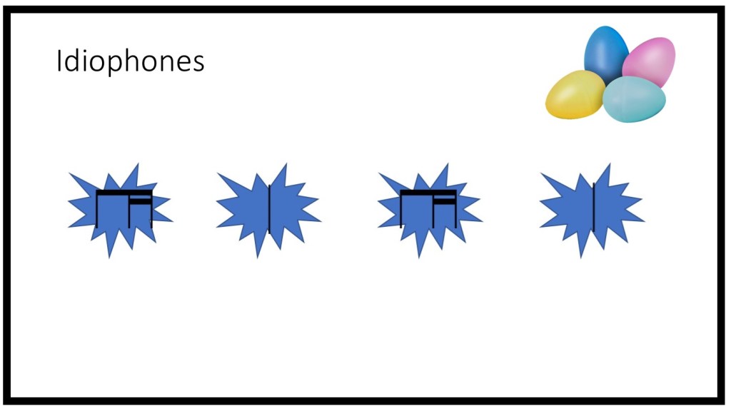 After learning the melody and words, the instrument rhythms and chants, and the Boomwhacker accompaniment, it was time to put the whole thing together! This composition was written and performed in the style of an Orff-Schulwerk arrangement. The Orff Approach, another textbook method of music education, often includes songs with multiple parts layered together, like this one. For our performance, we would sing through the melody together as a class, and then take turns with the instrumental sections. First we sing all together, then the chordophones play. Then we sing all together, then the Aerophones play, and so forth. The first graders LOVED this song and had so much fun putting it all together! I was so happy to see how each student knew what their instrument was classified as, how it vibrated, and could play it in the rhythm they helped create using iconic notation.